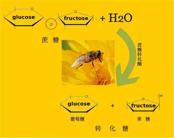 在酶的作用下,當(dāng)蔗糖的濃度降到5%(有些蜜為10%)時,花蜜就算轉(zhuǎn)化成了蜂蜜。